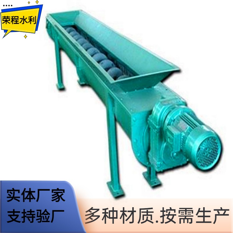 螺旋輸送機旋轉(zhuǎn)軸上焊有螺旋葉片,葉片的面型根據(jù)輸送物料的不同有實體面型、帶式面型、葉片面型等型式。螺旋輸送機的螺旋軸在物料運動方向的終端有止推軸承以隨物料給螺旋的軸向反力,在機長較長時,應加中間吊掛軸承。