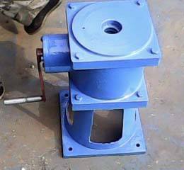 2、將手動螺桿啟閉機置于安裝位置。把一個限位盤套在螺桿上,將螺桿從橫梁的下部旋入機器中,當螺桿從機器的上方露出后,再套上限位盤。螺桿的下方與閘門連接。