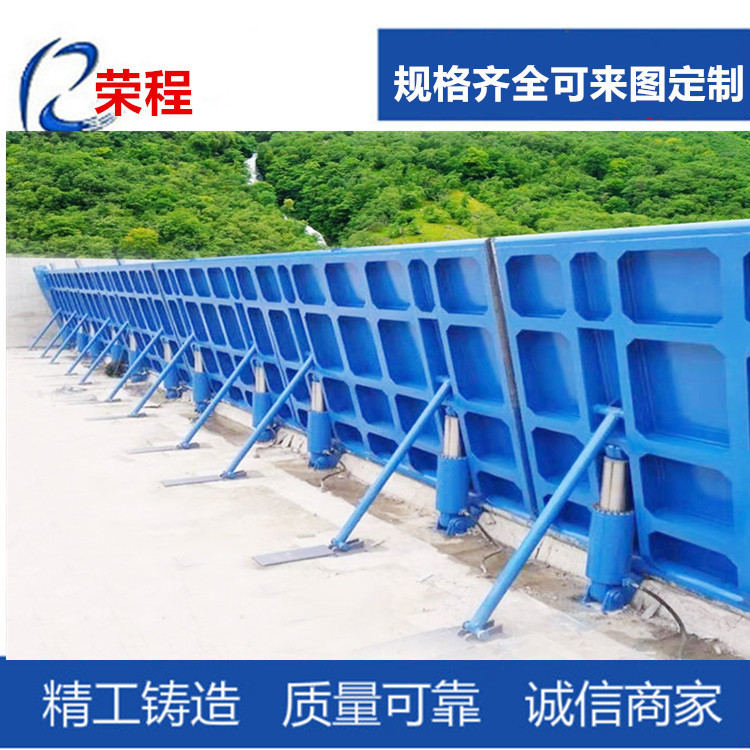 這種建筑物適合于閘孔較寬(10米~~100米)而水位差比較小的工況(1~~7米),由于它可以設(shè)計(jì)的比較寬,可以省區(qū)數(shù)孔閘墩,所以不僅結(jié)構(gòu)簡(jiǎn)單,可以節(jié)省不少土建投資,而且可以立門(mén)蓄水,臥門(mén)行洪排澇,適當(dāng)開(kāi)啟調(diào)節(jié)水位,還可以利用閘門(mén)門(mén)頂過(guò)水,形成人工瀑布的景觀效果。