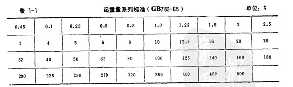(起重量的國(guó)家標(biāo)準(zhǔn)(GB783—65)圖表)