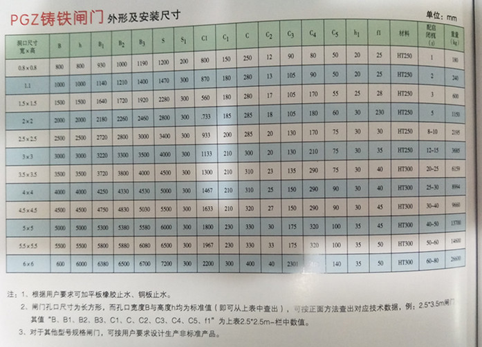 鑄鐵閘門有方形、圓形兩種。鑄鐵閘門一般由門葉和門框兩部分組成,門體和門框的材料為鑄鐵,一般整體鑄造、整體加工。 門體一般采用面板與加強(qiáng)肋的結(jié)構(gòu),面板可做平面或拱形。門體一般整體鑄造和機(jī)加工,但尺寸較大的采用分塊組成式可以根據(jù)客戶需要鑄造大小鑄鐵閘門。PGZ型鑄鐵閘門的尺寸與安裝。