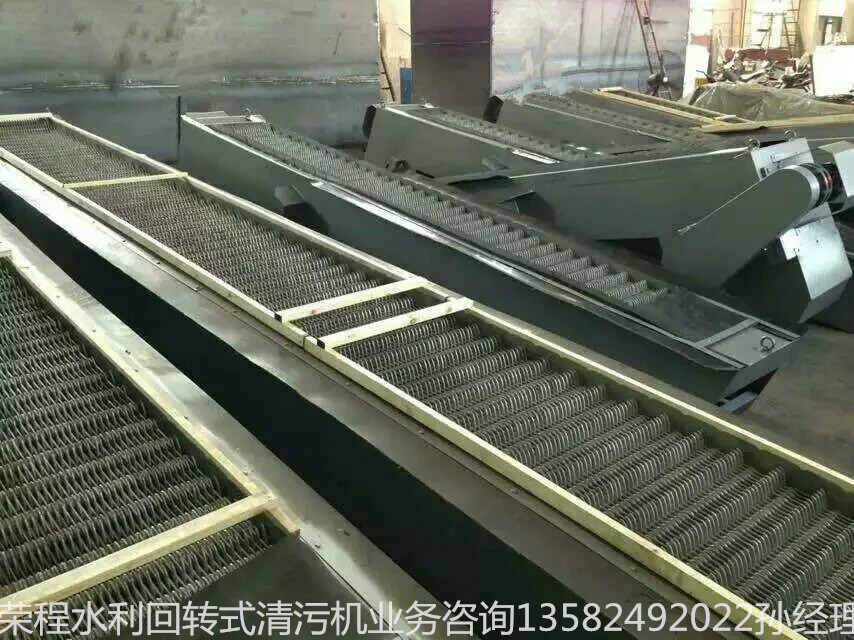 格柵除污機:由一種獨特的耙齒裝配成一組回轉(zhuǎn)鏈,在電機減速器的轉(zhuǎn)動下經(jīng),鏈輪傳動驅(qū)耙齒鏈,進(jìn)行回轉(zhuǎn)運動;耙齒鏈的下部浸沒于排水溝槽中,當(dāng)耙齒按工作方向運動時,每排橫軸耙齒即把液體中的固態(tài)顆;蚍Q雜物,從液體中分離出來;按水流方向耙齒鏈類同于網(wǎng)柵,在耙齒鏈橫軸上裝配的柵隙可以根據(jù)不同條件進(jìn)行選擇,當(dāng)耙齒鏈反流體中的固態(tài)物質(zhì)分離后可以保證水流暢通流過,整個工作過程是連續(xù)的。
