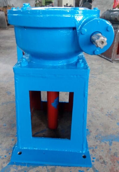 2、將手動(dòng)螺桿啟閉機(jī)置于安裝位置。把一個(gè)限位盤套在螺桿上,將螺桿從橫梁的下部旋入機(jī)器中,當(dāng)螺桿從機(jī)器的上方露出后,再套上限位盤。螺桿的下方與閘門連接。