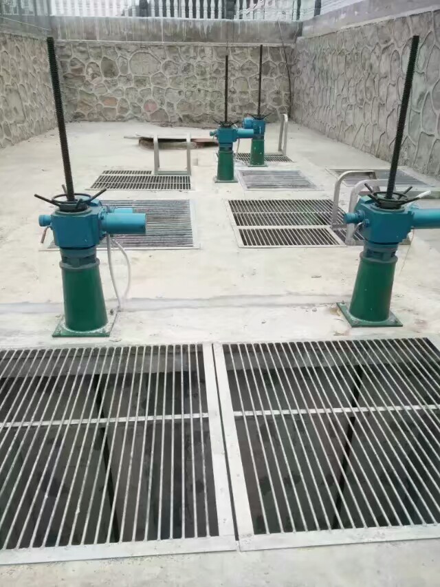 2、將手動(dòng)螺桿啟閉機(jī)置于安裝位置。把一個(gè)限位盤(pán)套在螺桿上,將螺桿從橫梁的下部旋入機(jī)器中,當(dāng)螺桿從機(jī)器的上方露出后,再套上限位盤(pán)。螺桿的下方與閘門(mén)連接。