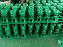 2、將手動(dòng)螺桿啟閉機(jī)置于安裝位置。把一個(gè)限位盤套在螺桿上,將螺桿從橫梁的下部旋入機(jī)器中,當(dāng)螺桿從機(jī)器的上方露出后,再套上限位盤。螺桿的下方與閘門連接。